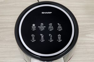 Nồi chiên không dầu Sharp thiết kế hiện đại, màu đen tối giản, tăng vẻ sang trọng cho không gian bếp