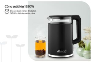 – Công suất mạnh mẽ 1850W, cho thời gian đun sôi nước nhanh chóng, giúp tiết kiệm điện năng tối đa.