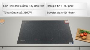 – Vùng phải 1500W – Booster 2 vùng nấu 1700W – Booster 1 vùng nấu 1800W.