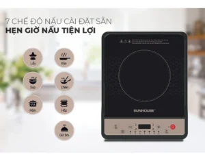Bếp từ Sunhouse được tích hợp sẵn chức năng hẹn giờ giúp kiểm soát và điều chỉnh thời gian nấu thích hợp. Sản phẩm có khóa trẻ em do đó những gia đình có trẻ nhỏ sẽ yên tâm hơn khi sử dụng.