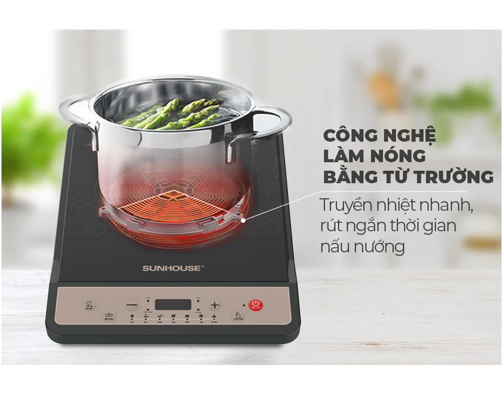 Bếp từ đơn Sunhouse SHD6160 1800W chịu nhiệt tốt, an toàn và tiết kiệm điện hiệu quả