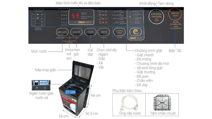 Bảng điều khiển chống thấm nước với các thông số cụ thể. Nút bấm chìm, dễ thao tác ngay trên bề mặt giúp việc giặt quần áo không còn là trở ngại. Chế độ giặt được thông tin chi tiết trên bảng điều khiển để bất kỳ ai cũng có thể thao tác giặt đồ.
