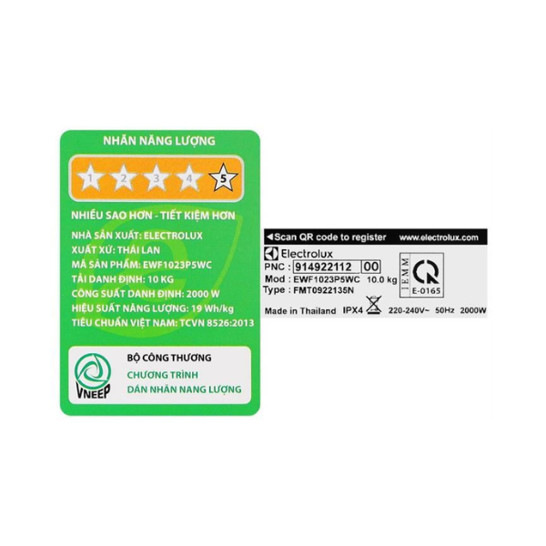 Máy giặt Electrolux UltimateCare 500 Inverter 10 kg EWF1023P5WC