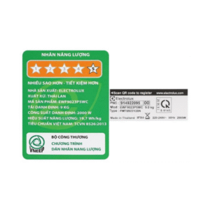 – Nhãn năng lượng 5 sao, hiệu suất sử dụng điện 19.7 Wh/kg.