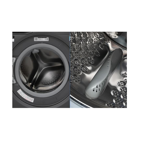 – Lồng giặt bằng thép không gỉ sáng bóng, có khả năng hạn chế cặn bột giặt và bụi vải tích tụ, giúp quần áo được giặt sạch sâu mà vẫn bảo vệ chất liệu.