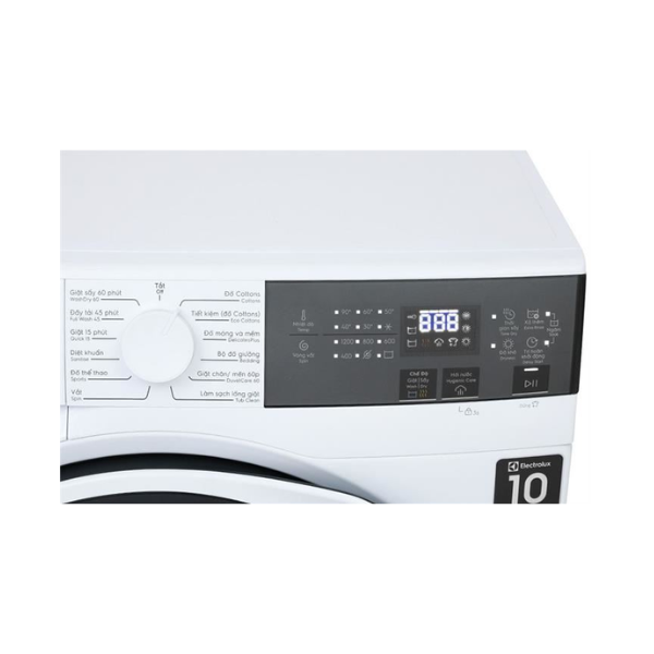– Bảng điều khiển của máy giặt sấy Electrolux được thiết kế dạng núm xoay và cảm ứng siêu nhạy, sử dụng song ngữ Anh – Việt cùng màn hình hiển thị giúp bạn thao tác nhanh chóng hơn, cho phép bạn quan sát các thông số liên quan đến chu trình giặt giũ trong suốt quá trình hoạt động.