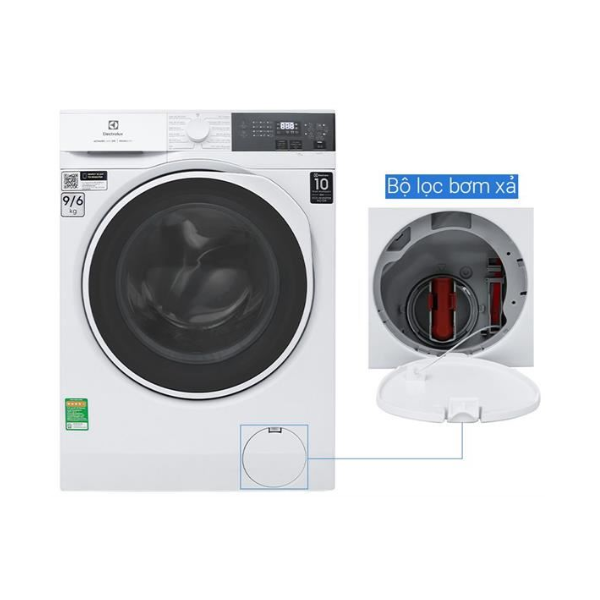 Máy giặt sấy Electrolux UltimateCare 300 Inverter giặt 9 kg – sấy 6 kg EWW9024P3WC có khối lượng giặt 9 kg, khối lượng sấy 6 kg thích hợp với gia đình từ 3 – 5 thành viên. Máy giặt được tích hợp nhiều chương trình hoạt động đủ để đáp ứng nhu cầu giặt sấy của gia đình. Máy hỗ trợ diệt khuẩn loại bỏ tác nhân gây dị ứng với công nghệ giặt hơi nước Hygienic Care, kết hợp cùng công nghệ EcoInverter giúp máy hoạt động êm ái, tiết kiệm điện năng.