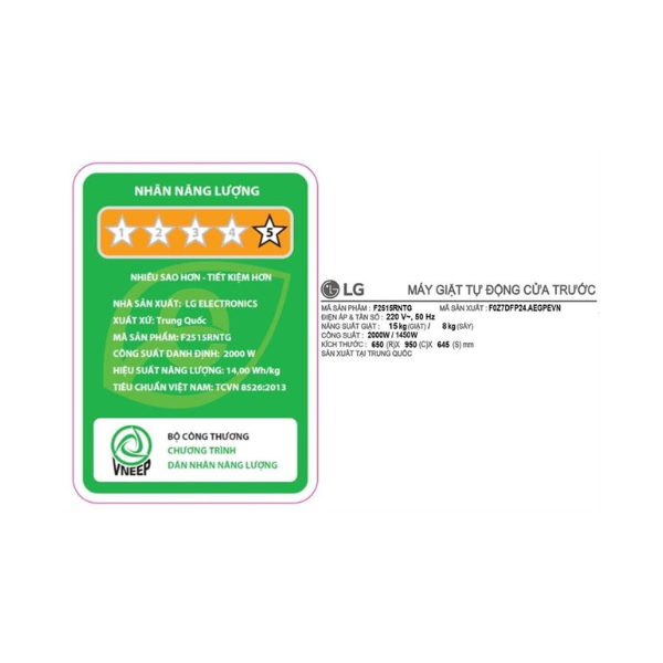 Máy giặt sấy LG Inverter F2515RNTG với khả năng giặt 15 kg và sấy 8 kg, cùng loạt công nghệ thông minh, chiếc máy giặt sấy LG này phù hợp cho gia đình đông người hoặc các hộ thường xuyên giặt nhiều đồ lớn. Máy phù hợp với gia đình đông người, thường xuyên giặt nhiều đồ lớn và mong muốn tiết kiệm thời gian. Từ công nghệ giặt hơi nước diệt khuẩn, giặt thông minh AI đến sấy khô tiện lợi, kết nối thông minh, sản phẩm mang đến sự yên tâm và thoải mái, để bạn rảnh tay hơn trong cuộc sống bận rộn