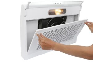 – Tuỳ vào tần suất sử dụng máy, bạn vệ sinh lưới lọc 1 – 2 tuần 1 lần. Việc vệ sinh lưới lọc thường xuyên sẽ giúp máy hút mùi hiệu quả, giữ vệ sinh cho không gian bếp, tăng độ bền cho máy.