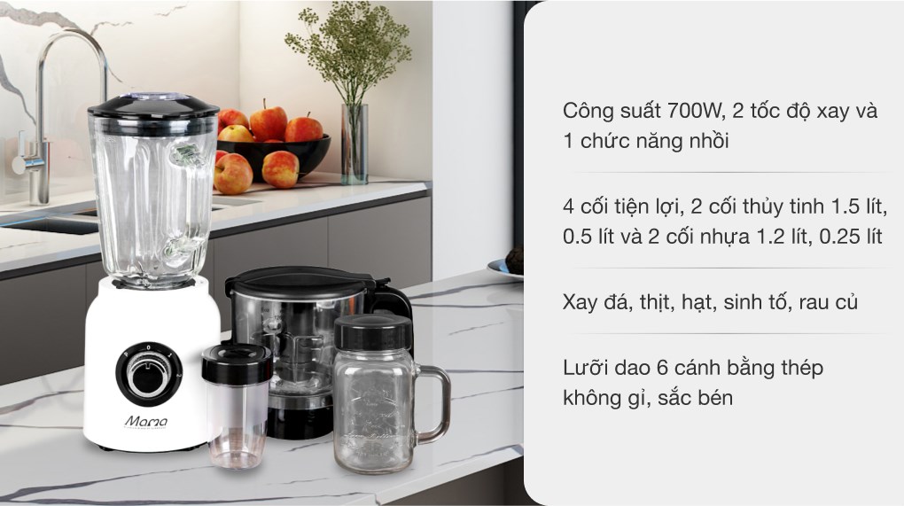 Máy xay sinh tố đa năng với chức năng xay sinh tố, xay hạt, xay thịt, có thể xay đá, xay đậu nành tiện lợi, cho bạn làm đồ uống, sơ chế thức ăn thuận lợi, tiết kiệm công sức.