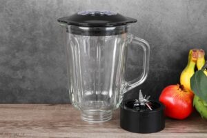 Cối lớn và cốc đựng bằng thủy tinh chịu nhiệt, cối xay hạt và cối xay thịt bằng nhựa, dễ vệ sinh.
