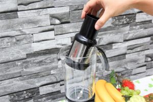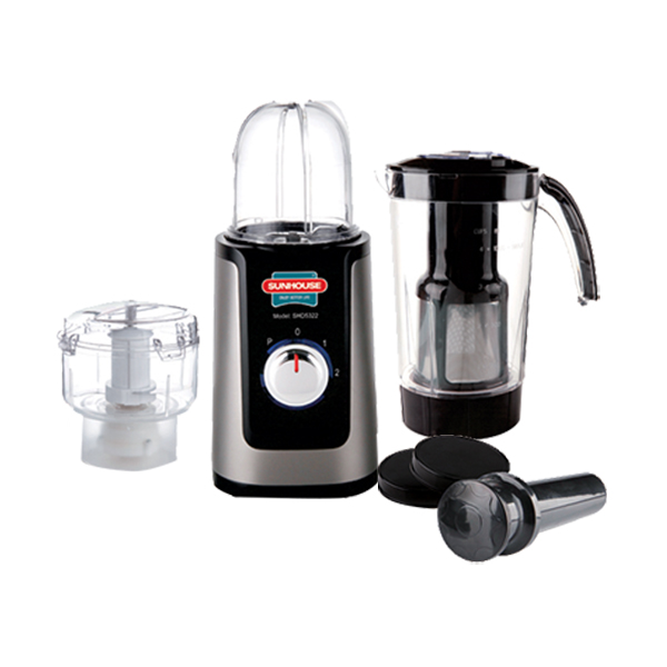 Máy xay sinh tố Sunhouse SHD 5322 được trang bị cối xay sinh tố kèm lưới lọc bã và 1 thanh đẩy giúp bạn xay trái cây được nhanh hơn. 1 cối xay thực phẩm khô và 1 cối xay thịt, đáp ứng mọi nhu cầu làm bếp của bạn.