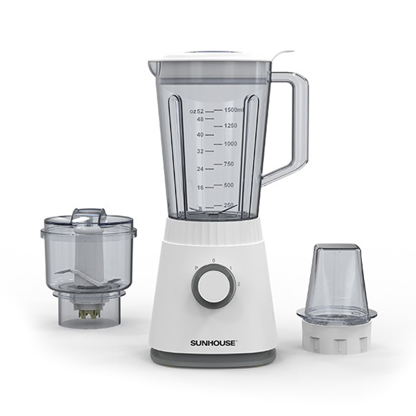 Máy xay sinh tố Sunhouse SHD5316 gồm 3 cối xay tích hợp 3 lưỡi dao riêng biệt, động cơ mạnh mẽ, hoạt động êm ái có thể xay nhuyễn nhiều loại thực phẩm hàng ngày tiện lợi, tiết kiệm thời gian và công sức cho công việc bếp núc của bạn.