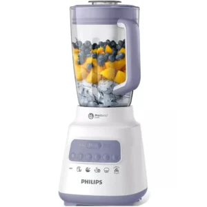 Máy xay sinh tố PHILIPS HR2221 có thiết kế gọn gàng, hiện đại với tông màu trắng pha tím trẻ trung, phù hợp với mọi không gian bếp. Máy có cối xay làm bằng chất liệu nhựa kháng vỡ chắc chắn, dung tích 2 lít giúp bạn xay được khối lượng thực phẩm lớn. Thân máy làm bằng nhựa cao cấp cho khả năng chịu lực tốt, đồng thời máy có trọng lượng vừa phải để bạn di chuyển dễ dàng.