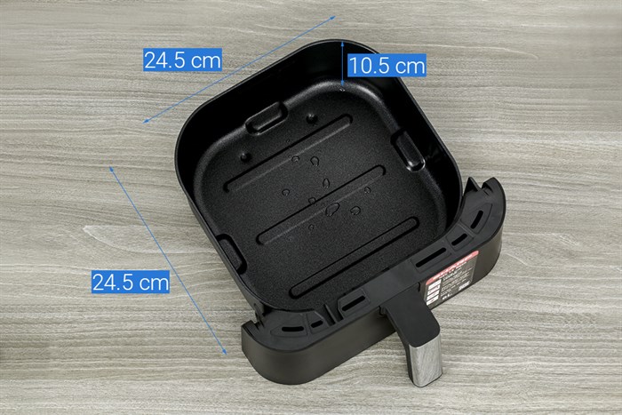 – Dung tích tổng 6 lít, dung tích sử dụng 4.9 lít, có thể chiên được 5 đùi gà.