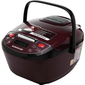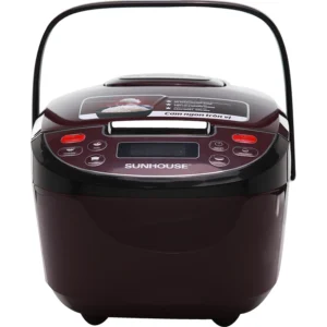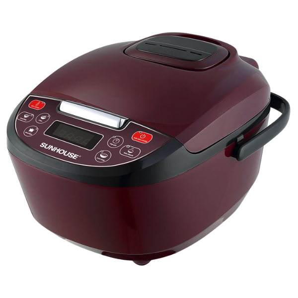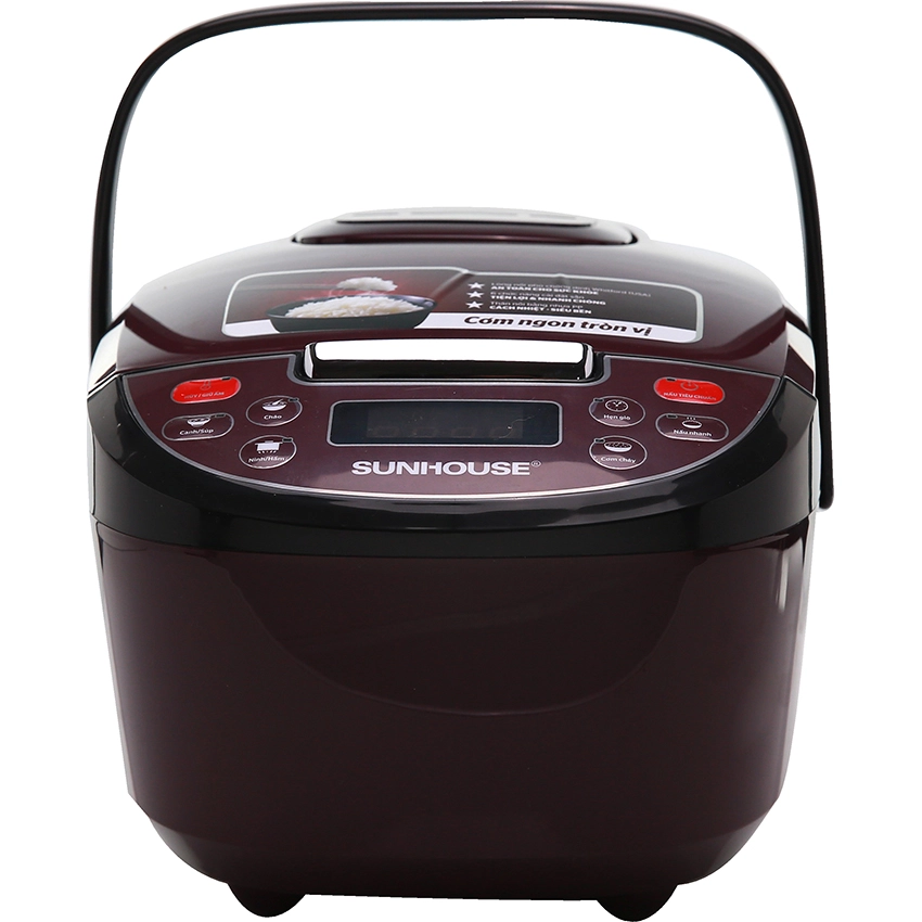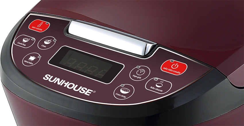Nồi cơm điện tử Sunhouse có vỏ ngoài nồi được làm bằng nhựa cao cấp siêu bền, cách nhiệt tốt, phối màu mận chín độc đáo