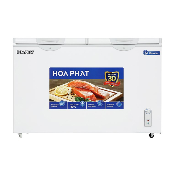 Công nghệ Inverter: Có khả năng điều chỉnh vòng quay máy nén để duy trì nhiệt độ tối ưu bên trong tủ, giúp tủ vận hành êm ái và mang lại hiệu quả tiết kiệm điện tối ưu trong suốt thời gian tủ đông Hòa Phát 352 lít hoạt động.