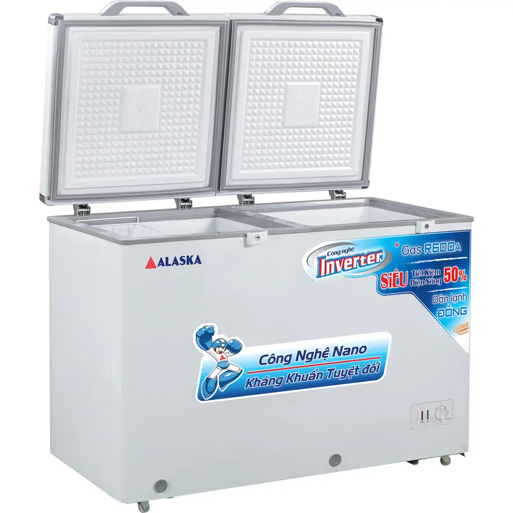 Tủ đông được trang bị công nghệ Inverter tiết kiệm điện. Công nghệ này giúp tủ hoạt động hiệu quả hơn với tiêu thụ điện năng thấp hơn so với các tủ thông thường. Tủ đông Alaska Inverter còn giúp máy hoạt động êm ái và bền bỉ hơn, không ảnh hưởng đến quá trình sinh hoạt của gia đình hay các hoạt động kinh doanh.