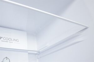 – Công nghệ làm lạnh gián tiếp: quạt thổi hơi lạnh từ trong dàn lạnh được thiết kế ẩn đi qua các cửa dẫn rồi truyền đến các ngăn giúp hơi lạnh lan rộng, thực phẩm được giữ lạnh tối ưu mà không bị đóng tuyết.