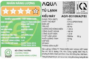 – Aqua AQR-B310MA(FB) có dung tích sử dụng 260 lít, thích hợp dùng bảo quản thực phẩm trong gia đình nhỏ có 2 đến 3 thành viên.