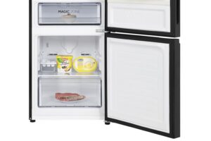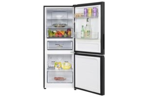 – Kiểu dáng: thuộc dòng tủ lạnh ngăn đá dưới trang bị 2 cánh cửa bằng thép không gỉ bền chắc, chịu lực tốt, dễ dàng đóng mở. Thiết kế tối giản, gam màu đen thời thượng góp phần tô điểm cho căn phòng bếp gia đình thêm nét hiện đại, thanh lịch.