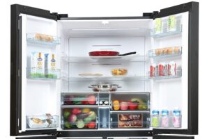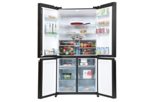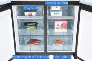 – Đây là mẫu tủ lạnh cỡ lớn Multi Door, chất liệu cửa tủ bằng kính cường lực có độ bền cao.