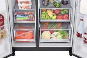 – Công nghệ DoorCooling+ sẽ tỏa hơi lạnh từ ngoài phần cánh cửa tủ, giúp luồng khí lạnh đi đồng đều hơn vì thế mà có thể bảo quản tốt các loại thực phẩm ngay cả những loại để ngoài gần cánh cửa.