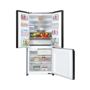 – Nhiều ngăn kệ được thiết kế trong tủ và bên trên cánh tủ giúp tăng không gian lưu trữ thực phẩm.