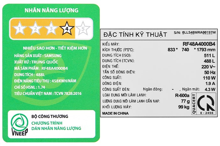 Dung tích 488 lít chứa được nhiều thực phẩm