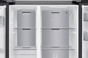 – Tủ lạnh Samsung trang bị bộ lọc than hoạt tính Deodorizer giúp loại bỏ mùi hôi và kháng khuẩn hiệu quả, duy trì không khí bên trong tủ luôn trong lành.
