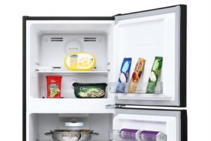 – Thiết kế tủ ngăn đá trên quen thuộc với người dùng. Cửa tủ làm từ kim loại có độ bền cao kết hợp với gam màu đen sang trọng giúp chống trầy xước và dễ dàng vệ sinh trong thời gian dài sử dụng.