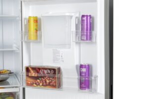 – Khay kệ thiết kế linh hoạt cho người dùng dễ dàng thay đổi theo nhu cầu, khay chứa ở cạnh cửa được làm với độ cao lý tưởng giúp giữ chai lọ của bạn vững vàng, tránh rơi vỡ.