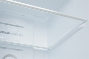 – Tích hợp công nghệ Origin Inverter gồm có máy nén Inverter cùng hệ thống quạt Inverter cho tủ lạnh vận hành mượt mà, êm ái, ổn định và tiết kiệm điện năng trong suốt thời gian sử dụng thiết bị.